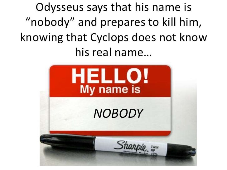 The cyclops eats some of his men, and odysseus makes a plan to give him wine so when he is drunk they will escape. What is admired in one generation is abhorred in another. Nobody—that's my name odysseus tells the cyclops polyphemus that his name is nobody. the clever ruse is part of his escape plan. Odysseus tells polyphemus his real name. His father must be dead.
